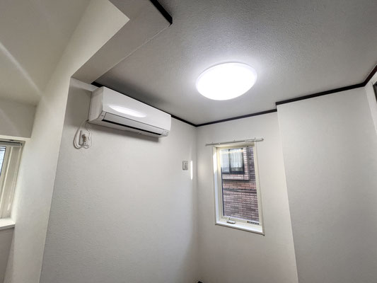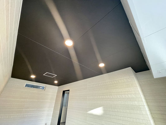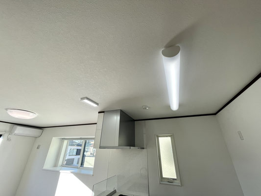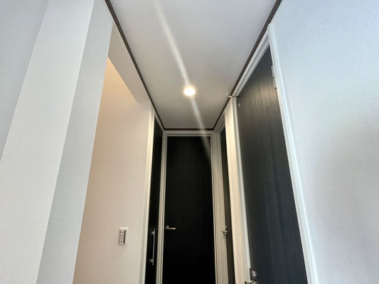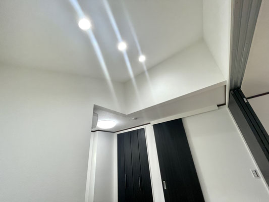 天井はスッキリとした埋込み型のダウンライトが設置済。