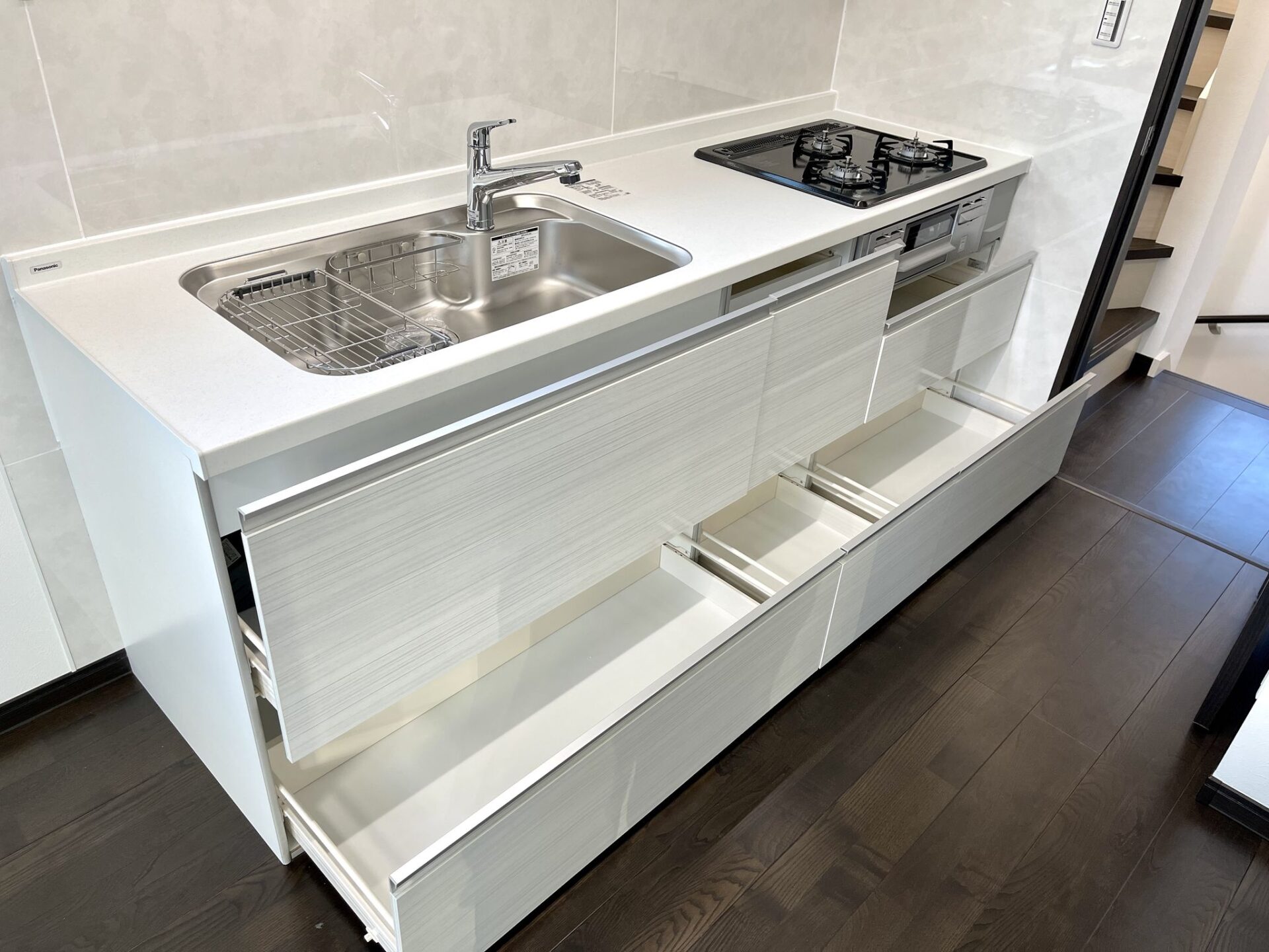 大容量の収納付きキッチンはお料理好き、調理器具好き、食器好きな方でも大満足!