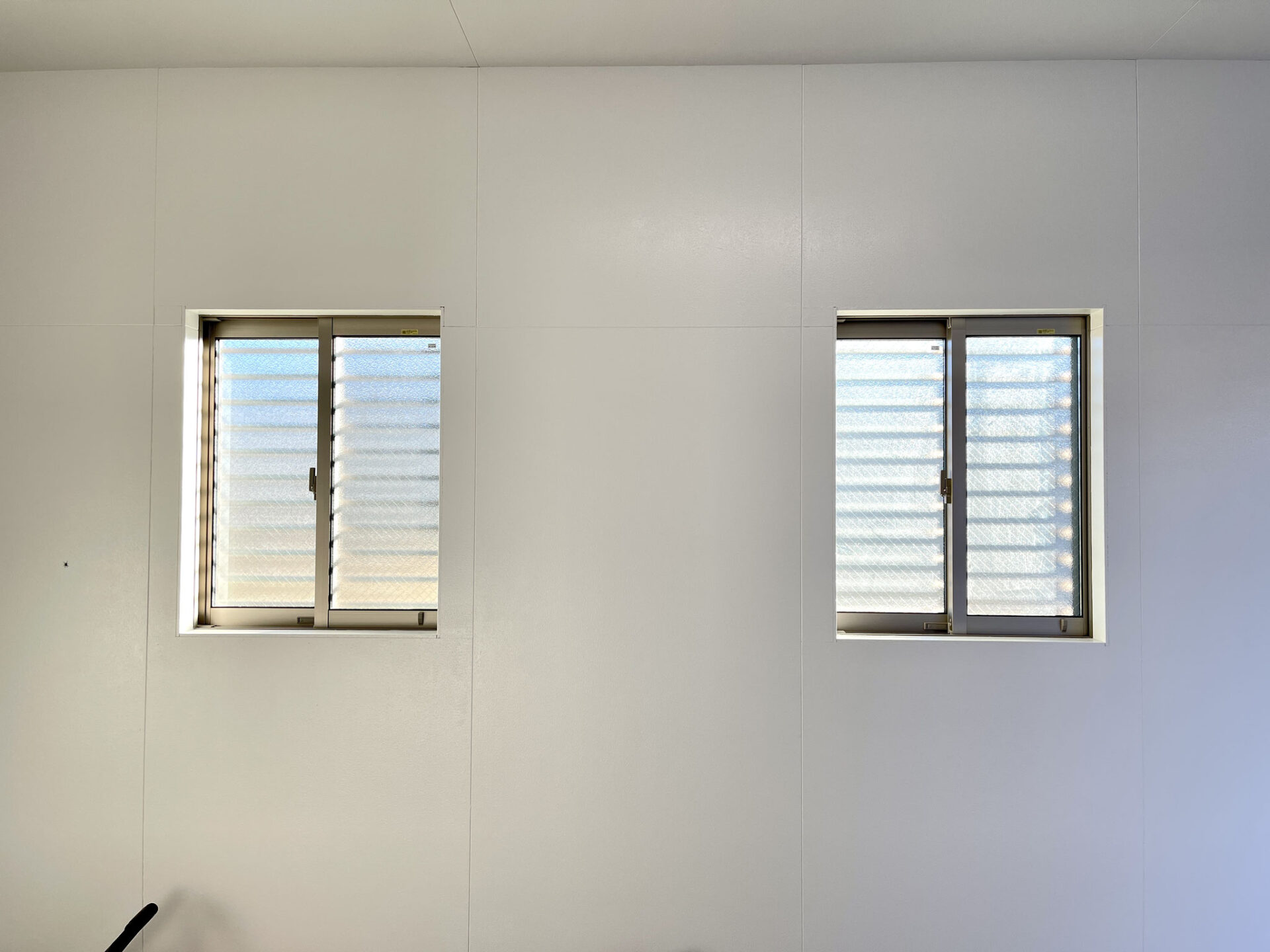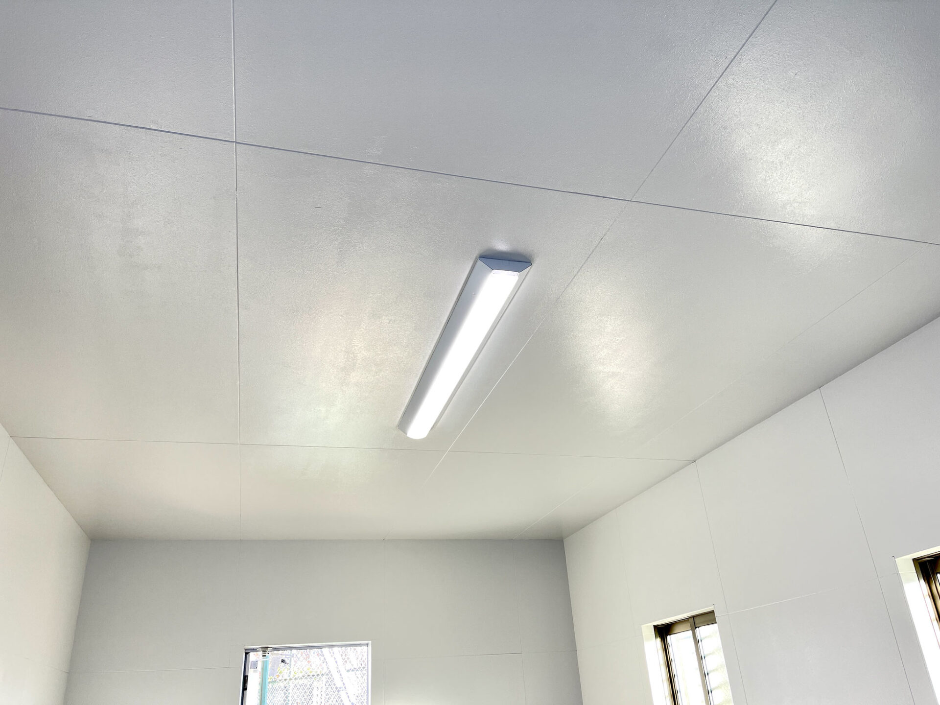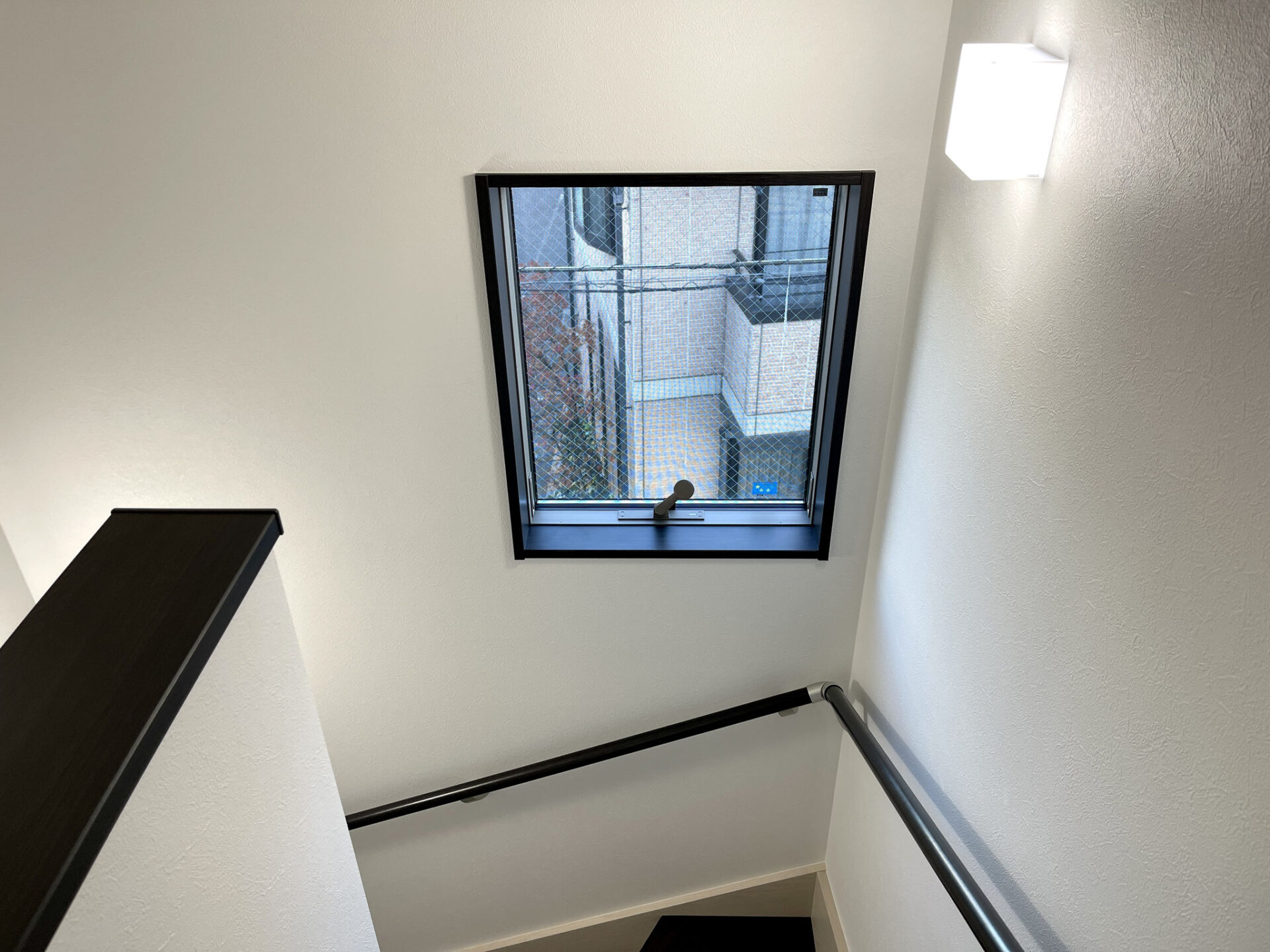 ガレージ内には換気の出来る窓やLED照明が設置済。