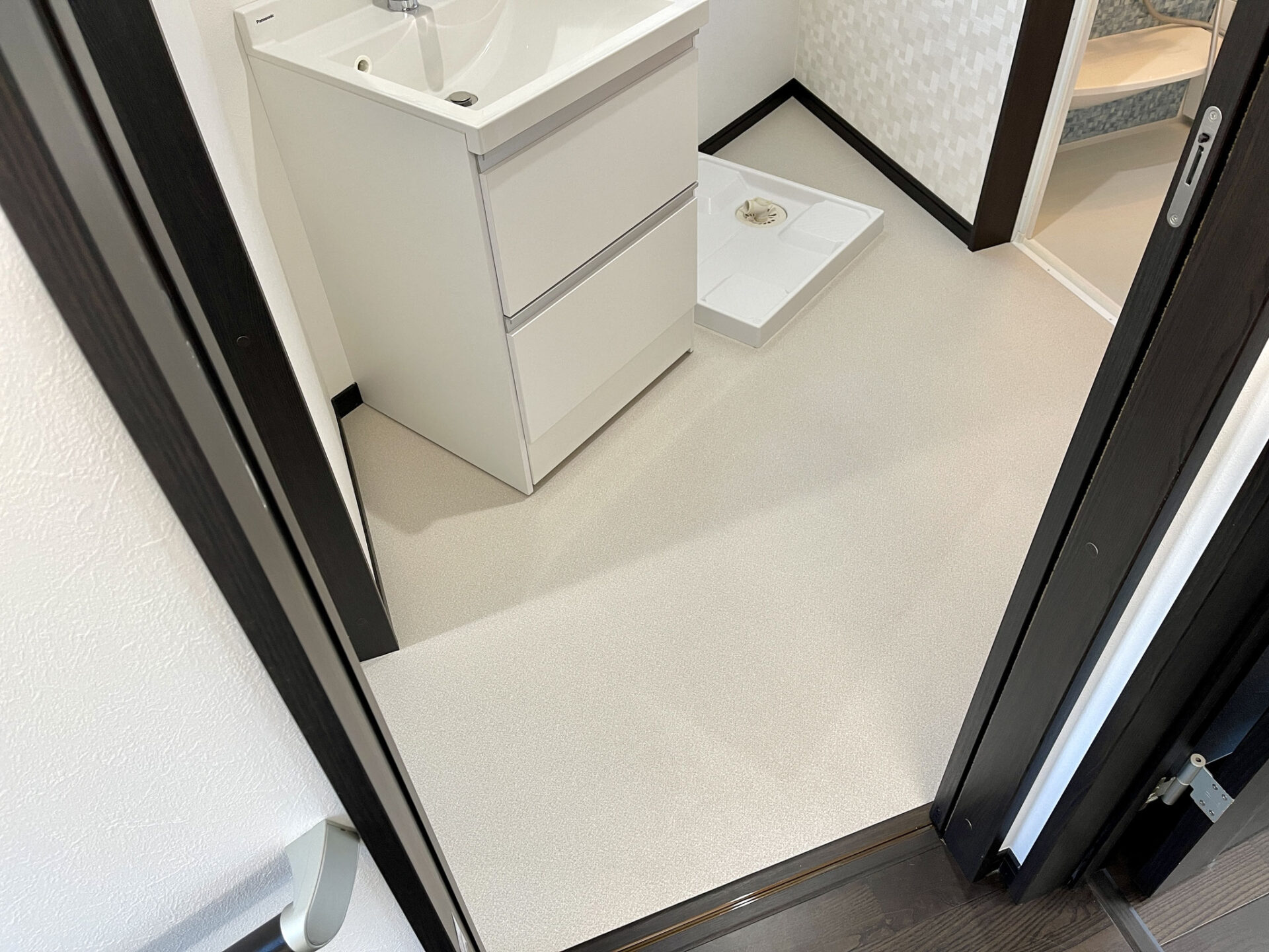 シンプルな独立洗面台と洗濯機置場付きの脱衣所です。