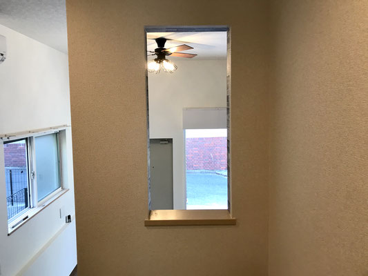 玄関ホールには飾り窓があってガレージを見下ろすことが出来ます♪