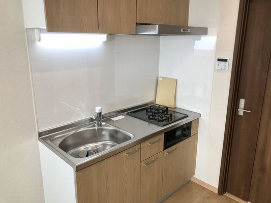 お部屋の反対側には使い勝手の良さそうなキッチンがあります。