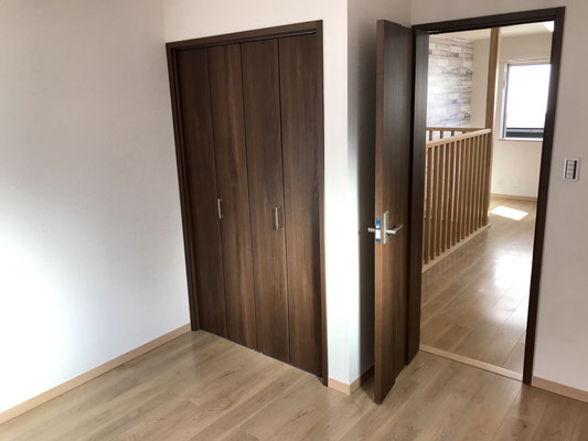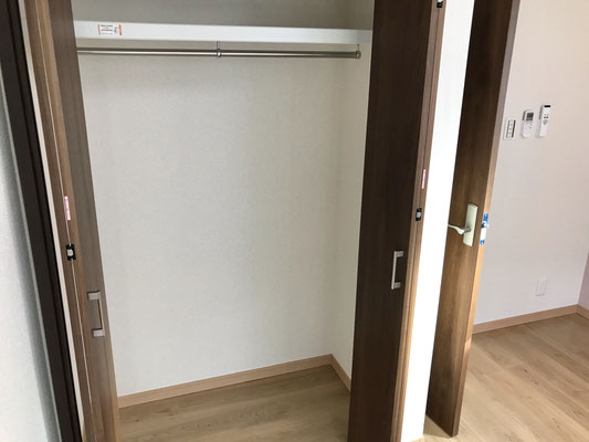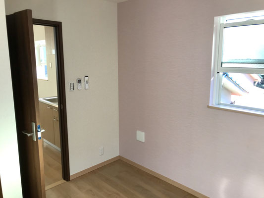 クローゼット付きのこちらのお部屋は、壁の一部が淡いピンクの壁紙になっていて可愛いお部屋。