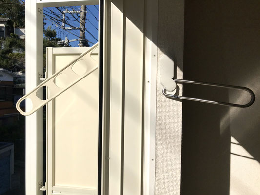 バルコニーやベランダはありませんが、窓には室内用と室外用の物干しが付いています。