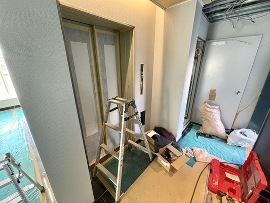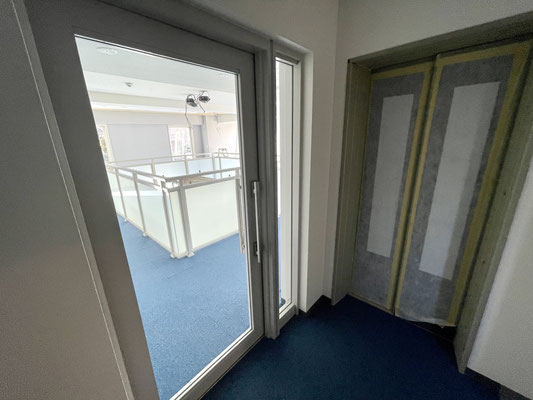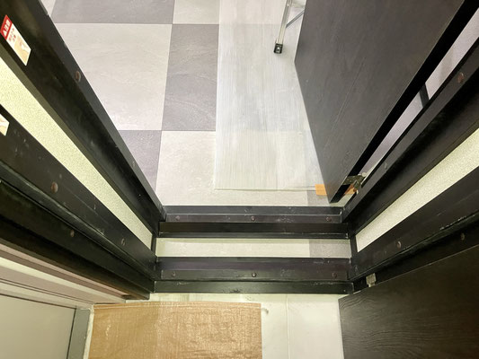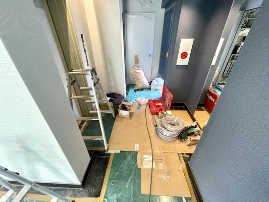 エントランスホールにはエレベーターもありますがこちらも現在工事中。