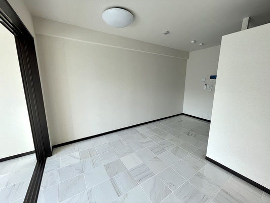 床のパターンはチェッカー模様になっており、天井には3連の照明器具が設置済。