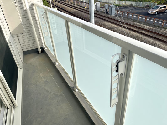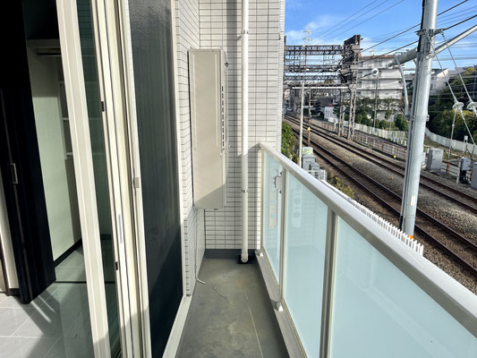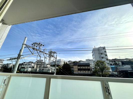 バルコニーは変形で広さもさほどありませんが、フェンスがハーフクリアーな物を使用しているので