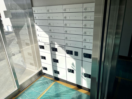 入り口の自動ドアの先には集合ポスト&宅配BOX!