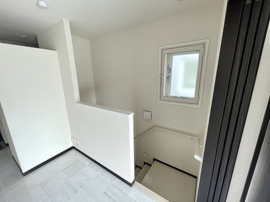 踊り場にはキッチンにもある2重サッシ窓があります。