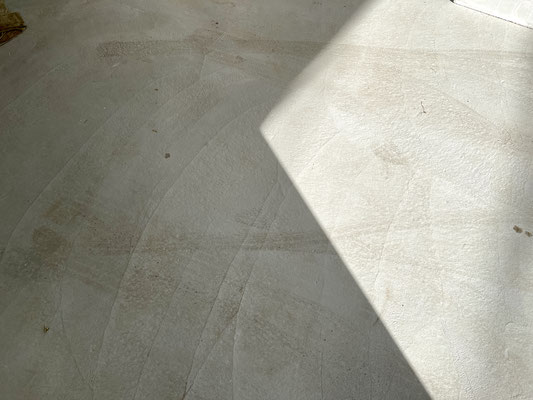 床はコンクリート土間仕上げ、壁はデコボコした質感のペイント仕上げ。