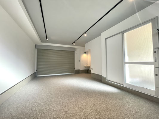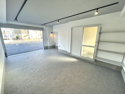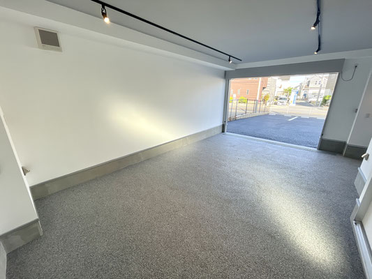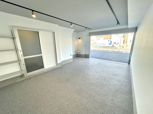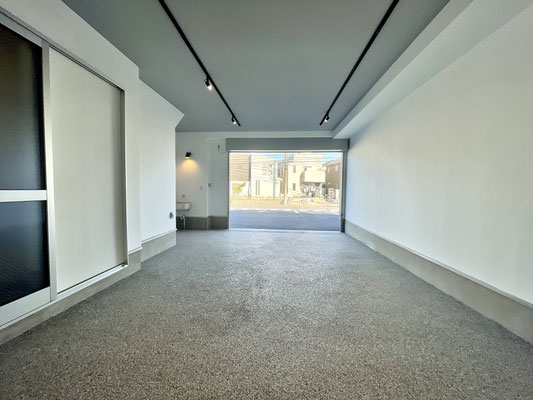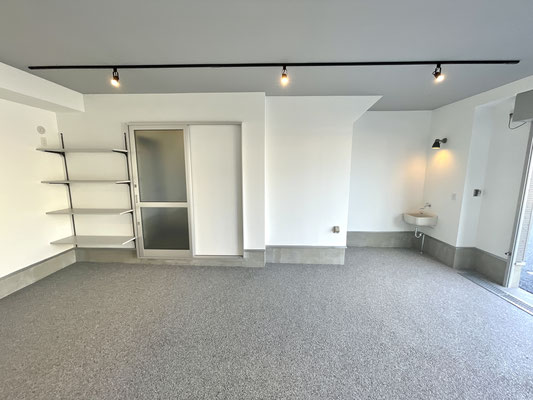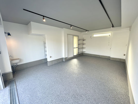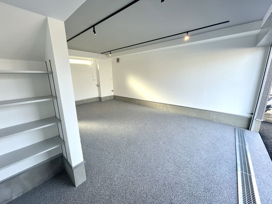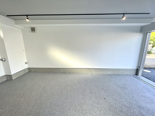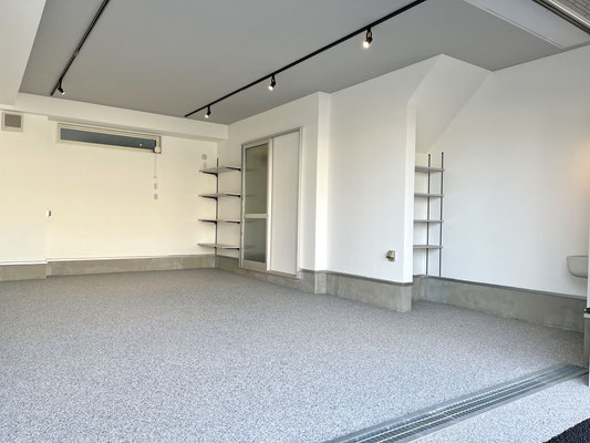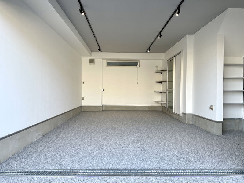 電動シャッターを開けるとガレージ内はご覧の通り〜