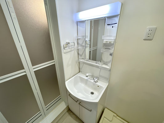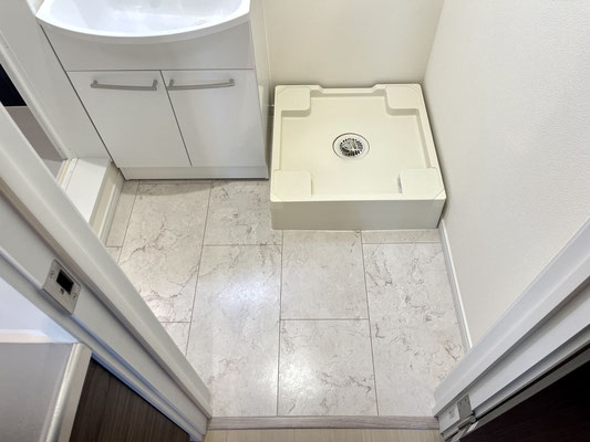 扉を開けると洗濯機置場と独立洗面台がある脱衣所があります。