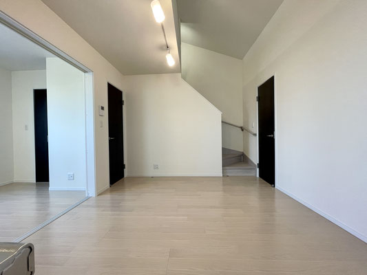 階段を登って扉を開けると34.15㎡ 7.87帖のDKスペースがあります。