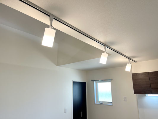 お部屋の中には収納があり、天井にはライティングレールがありお部屋の中を照らしてくれます。