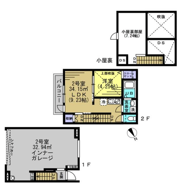 ガレージは「002」号室の反転タイプ。
