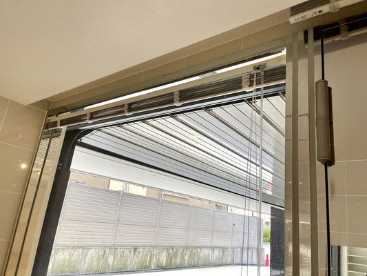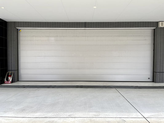 シャッターはシルバーのオーバースライド型でスッキリとしたタイプの物を採用。