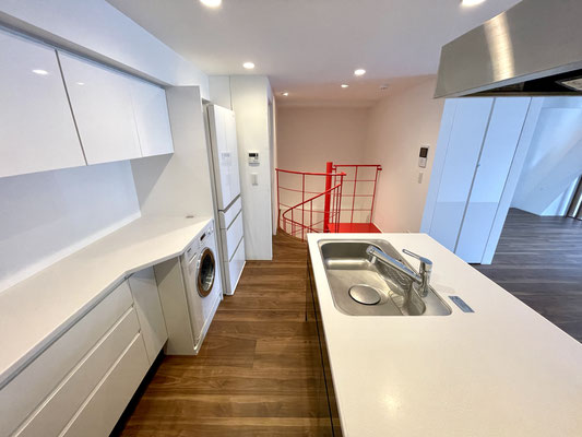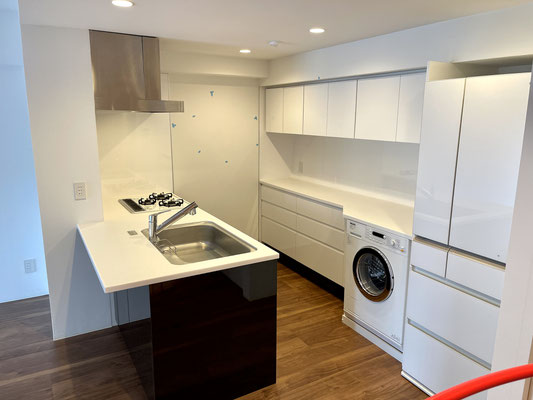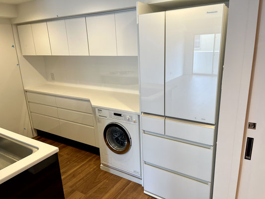 収納棚の下には洗濯機がビルトインされています。