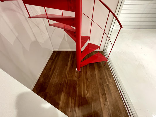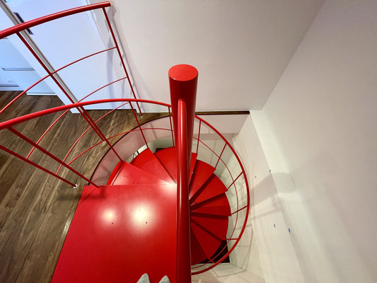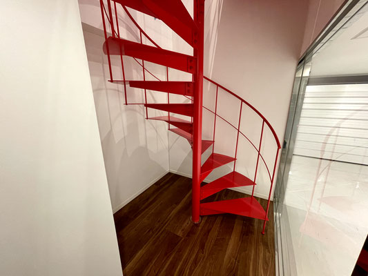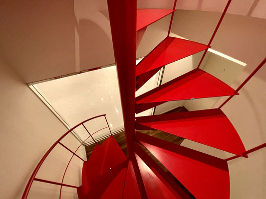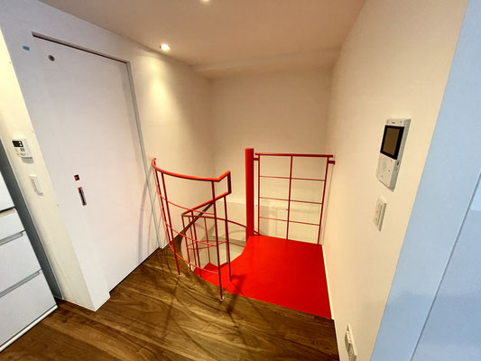 その先の扉を開けると真っ赤な螺旋階段があるスペース!