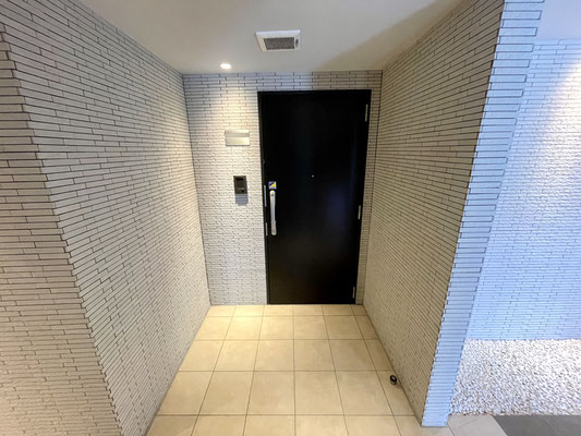 オートロックを入ってすぐ左手に今回ご紹介する「101号室」の玄関があります。