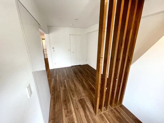 木製の縦格子が特徴的なお部屋です。