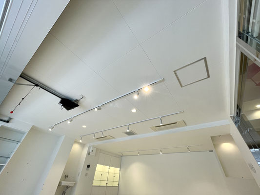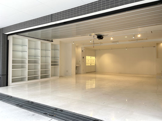 天井にや壁には各種照明器具がありますのでシャッターを閉めても愛車やディスプレイを照らしてくれます。