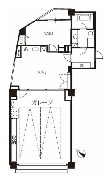 その1階部分のお部屋のみ、ガレージ付きの物件になっています。