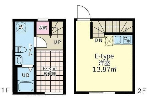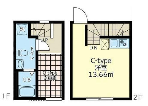 C号室は玄関から階段を上がった先にお部屋があるメゾネットタイプ。
