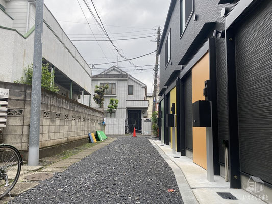 B~D号室は私道の奥まった場所に位置しています。