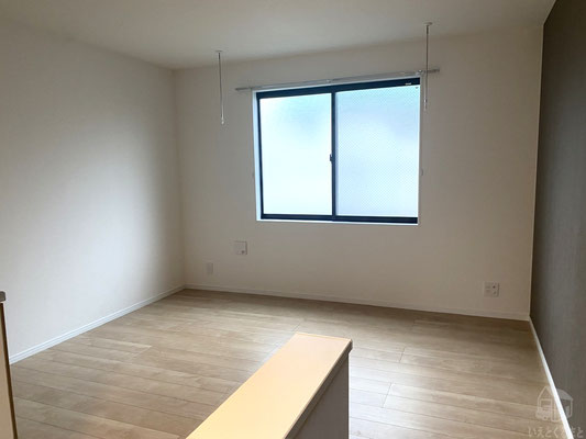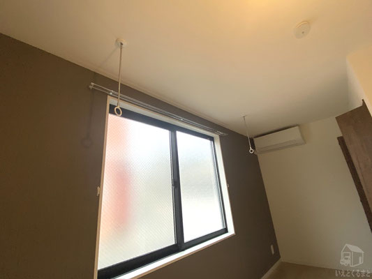 また、窓の手前には室内物干しが設置されており、天気や花粉を気にせず洗濯物が干せるのが嬉しいポイント。