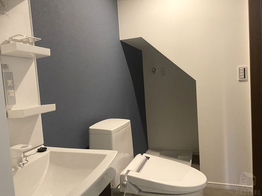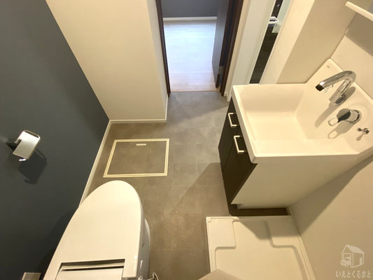 トイレ・独立洗面台・洗濯機置き場がすっきりひとまとめに配置されています。