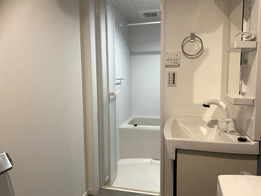 独立洗面台のすぐ隣にはバスルームがあります。