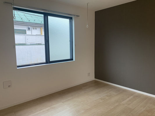 壁の一部にはブラウン系のアクセントクロスを採用。