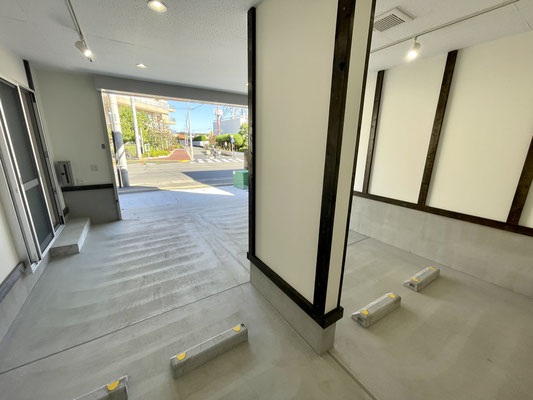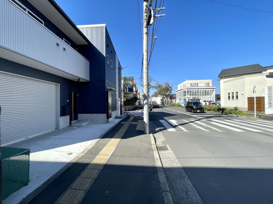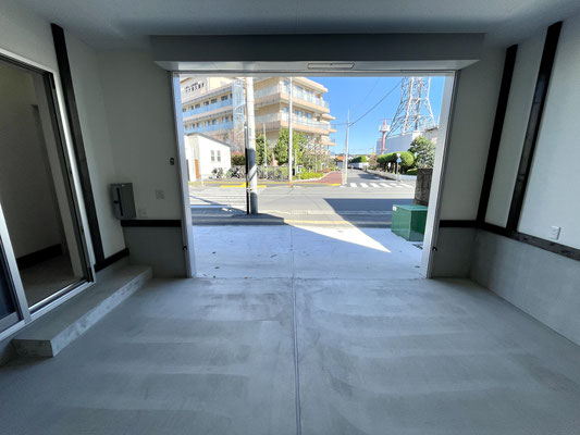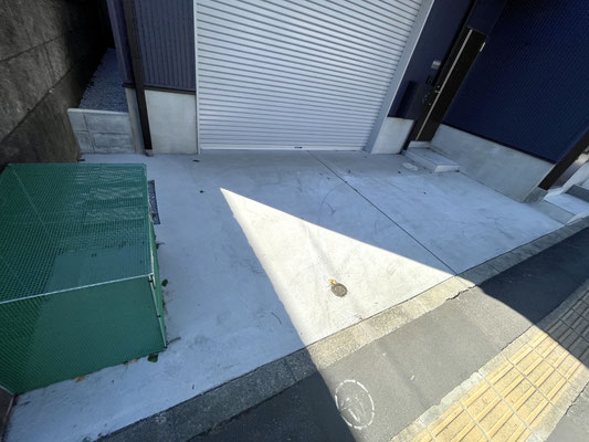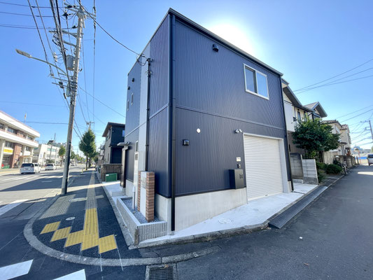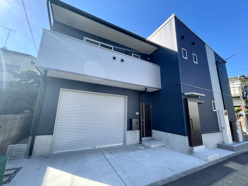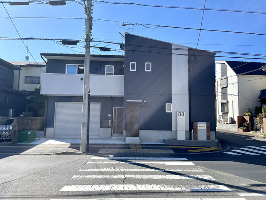 パッと見は一軒家にも見えますが、2戸物件でガレージシャッターはそれぞれ違う道路に接道しています。