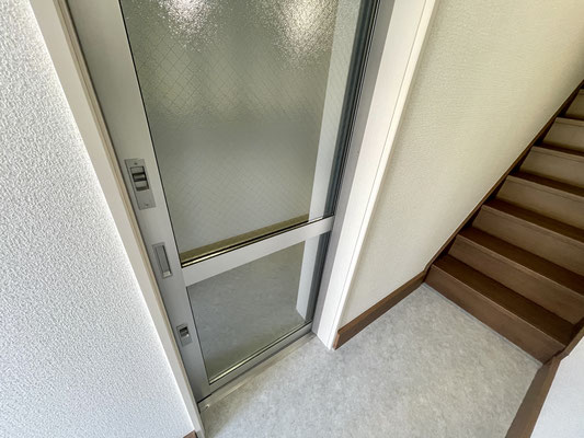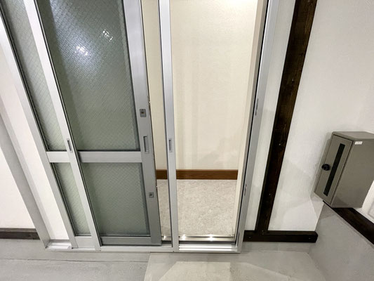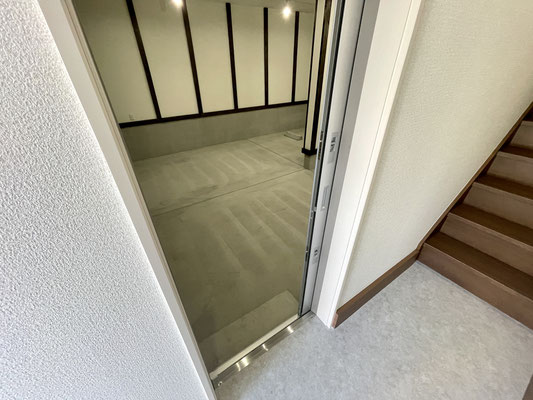 入ってすぐ左手にはガレージに通じるスライドドアがあります。