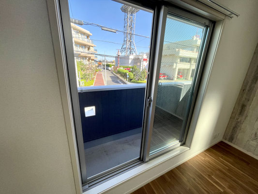 お部屋の端にある大きな窓からはベランダにアプローチ出来ます。