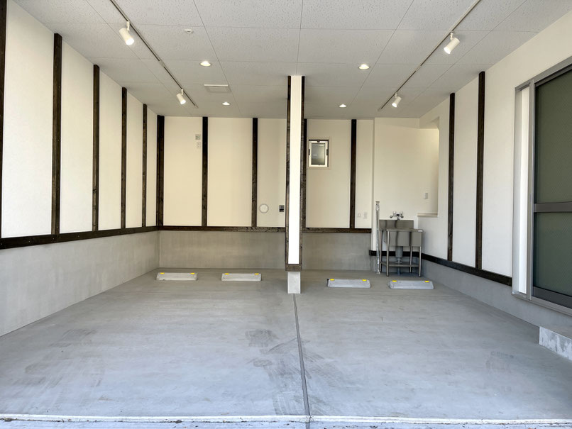 電動シャッターを開けるとガレージ内部はこんな感じ〜
