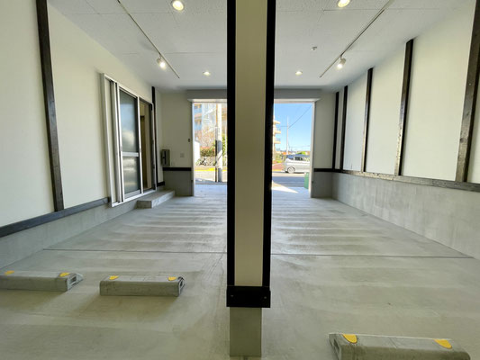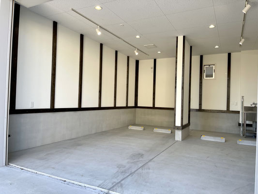 中央部に仕切りのようにある耐力壁が特徴的なガレージ!!