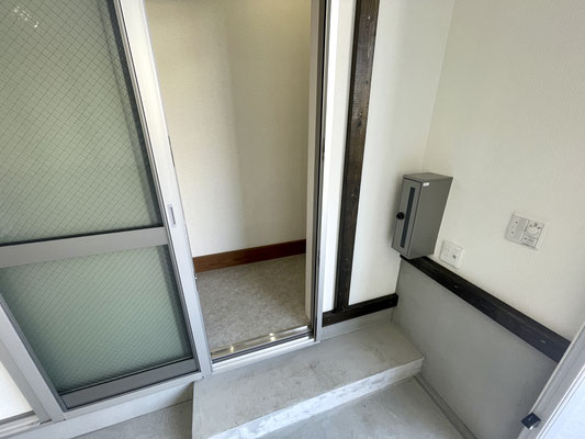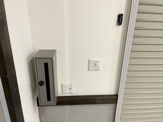 ガレージ内には玄関ホールに通じる網戸、ロック付きのスライドドア、その付近にはメールBOXの取り出し口、