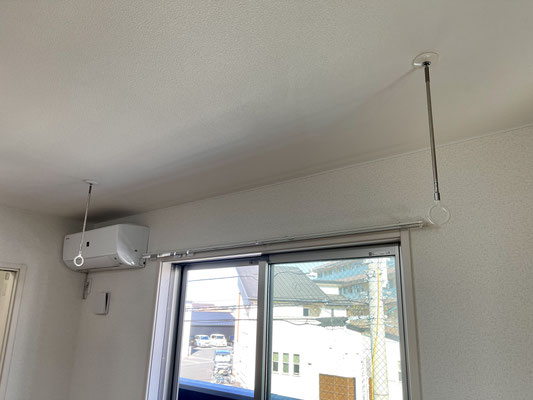 窓周辺には室内物干しも完備していますのでお天気が悪い日の洗濯にも便利!