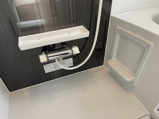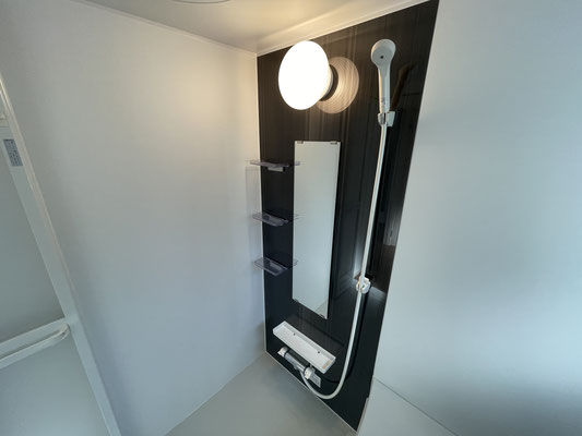 ハーフ化粧板タイプ!落ち着いた濃いブラウンのお風呂です。