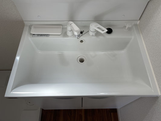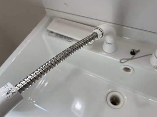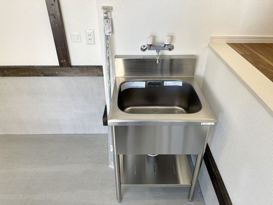 お湯も出る水栓、階段下を利用した収納スペース、換気が出来る小窓、換気扇、