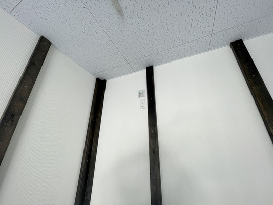まるで古民家でよく見る柱が見えている【真壁】のようなデザインの壁と