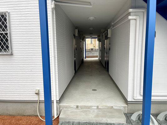 ガレージ奥の扉を開けると共有廊下に出ます。