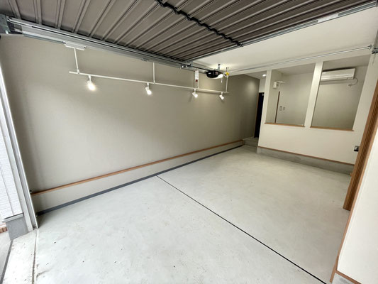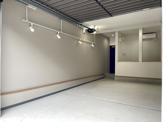 電動シャッターを開けるとガレージ内部はこんな感じ〜