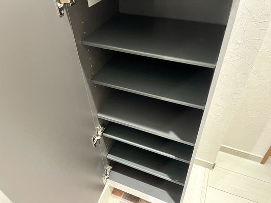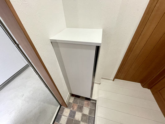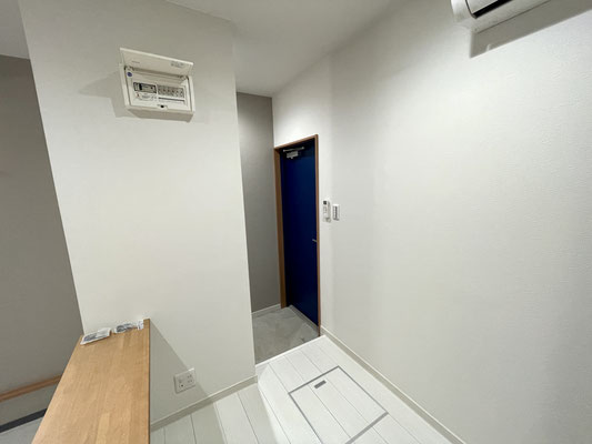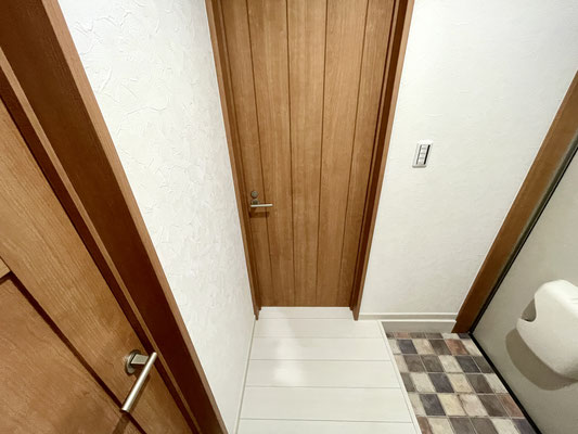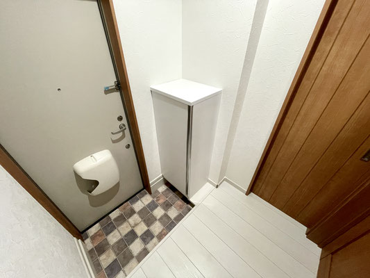 中に入ると小さめの下駄箱収納と落ち着く色合いの3つの扉が出迎えてくれます。