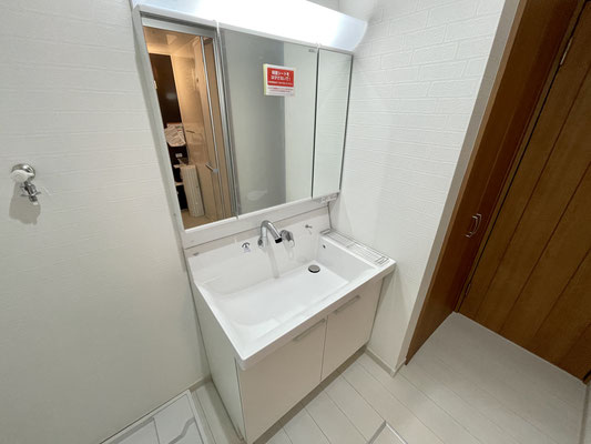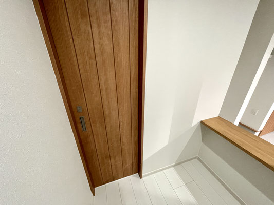 ドア付近には扉付きの収納だってあるし、大きな洗面台も大収納!