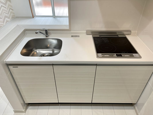 人気の対面キッチンはお手入れのしやすいIHコンロです。