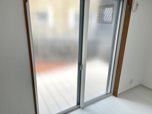 ペアガラスの窓はスリガラス仕様!シャッター雨戸も付いているので1階でも安心ですね〜