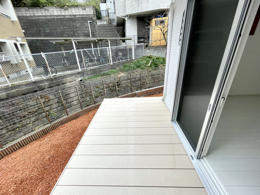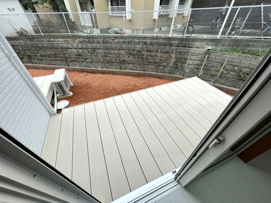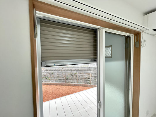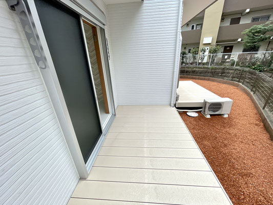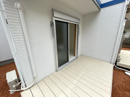 お部屋の端にある掃き出し窓からはテラスデッキにアプローチ出来ます。