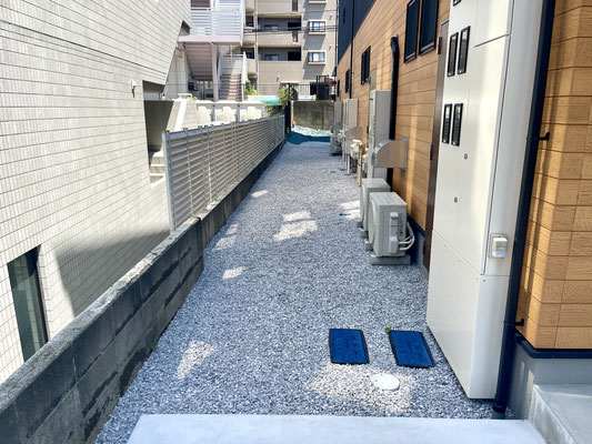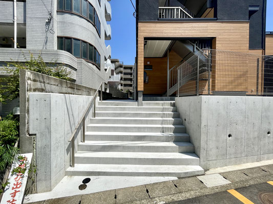 スロープとは別に階段があり、敷地内から道路へとアプローチ出来ます。